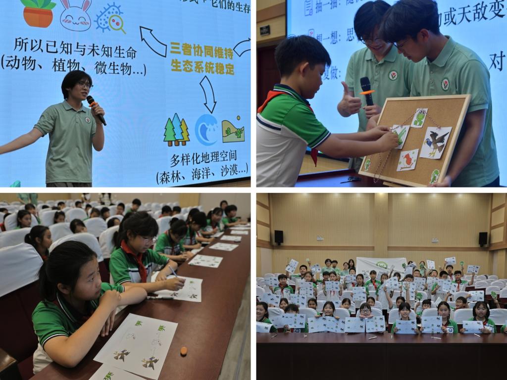 活动伊始,科普团成员化身生态向导,以“生物多样性大冒险”的任务形式开启认知之旅。讨论中,学生逐渐理解每个物种都是生态链的关键节点,也意识到生物多样性的脆弱与珍贵,坚定了保护生物多样性的决心。